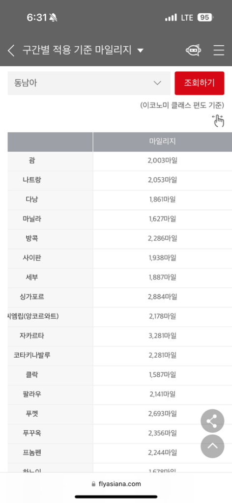 3만 마일리지를 탑승 마일리지로 채우려면 6번 왕복하면 된다.