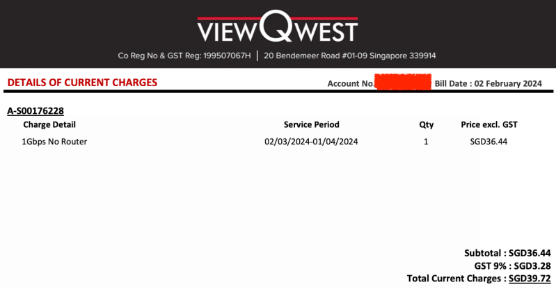 ViewQwest 업체를 사용하고 있다. 라우터 없는 요금제로 1G에 월 39.72 SGD