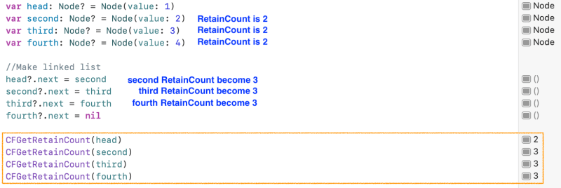 init(value: Int, prev: Node? = nil, next: Node? = nil) {