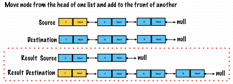 - there is a linked list, create a new node and append it as a last node. Don’t forget to handle last node’s next is nil