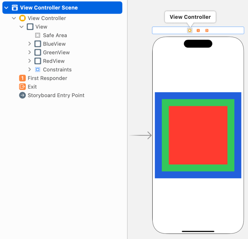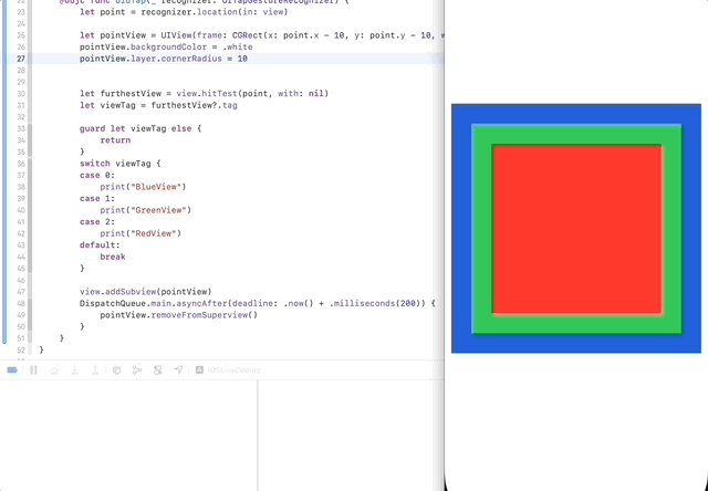 When you tap the center of rectangle, It prints RedView because It’s the farthest view.