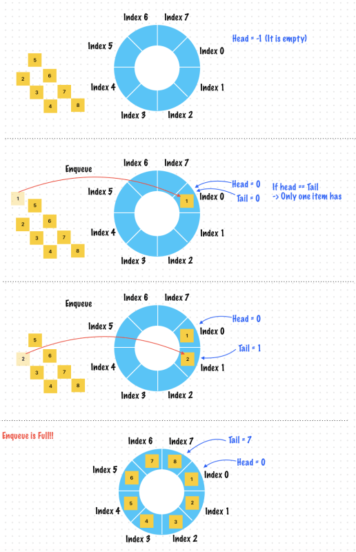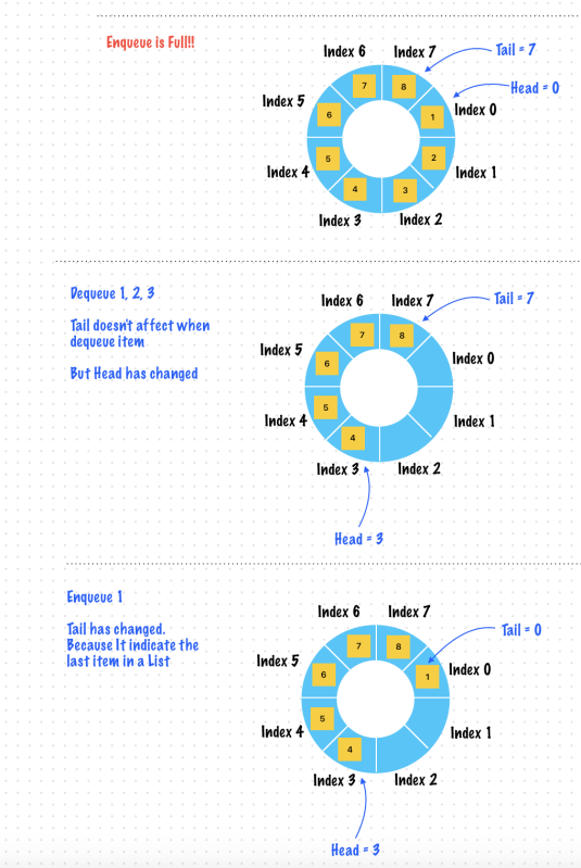 //WHen the queue is full this means that the head index and tail index are right next to one another