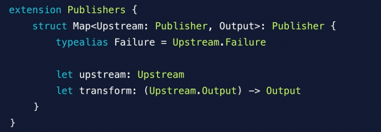 A publisher that transforms elements from an upstream publisher into a publisher of that element’s type.