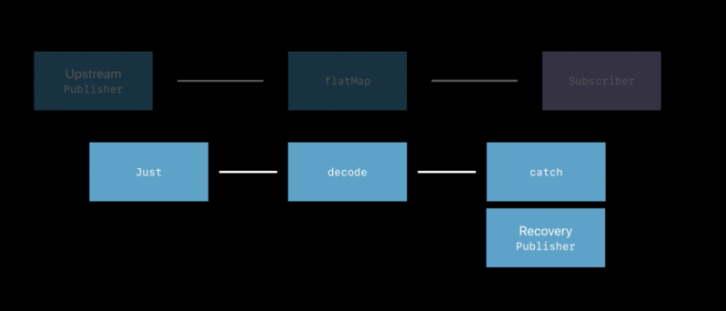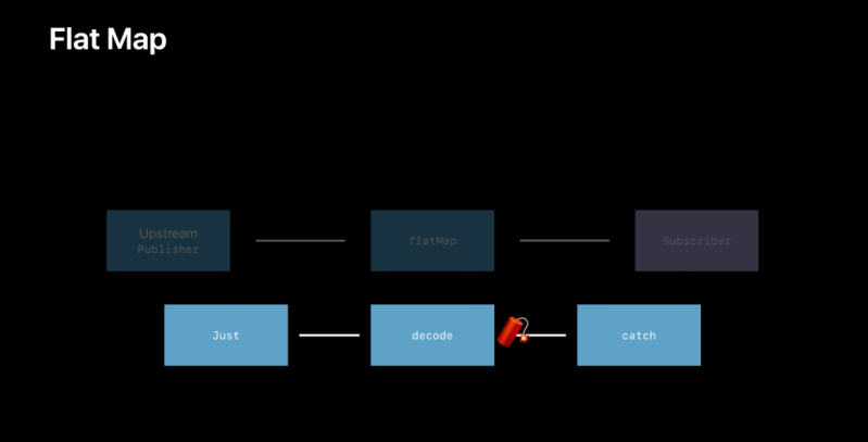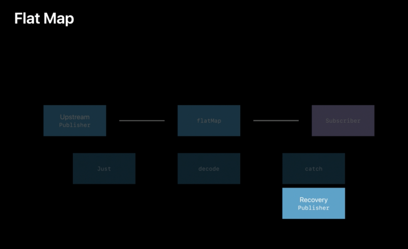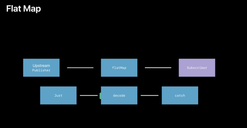 flatMap(maxPublishers:_:)operator performs a similar function to theflatMap(_:)operator in the Swift standard library, but turns the elements from one kind of publisher into a new publisher that is sent to subscribers. UseflatMap(maxPublishers:_:)when you want to create a new series of events for downstream subscribers based on the received value. The closure creates the newPublisherbased on the received value. The newPublishercan emit more than one event, and successful completion of the newPublisherdoes not complete the overall stream. Failure of the newPublishercauses the overall stream to fail.