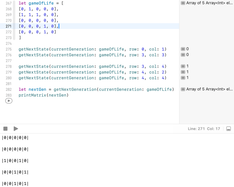 public func getNextGeneration(currentGeneration: [[Int]]) -> [[Int]] {