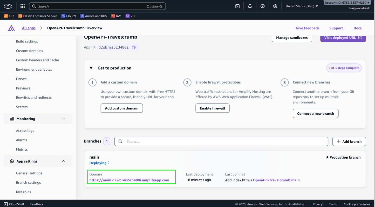 I choose the AWS Amplify for deploying OpenAPI Static Website.